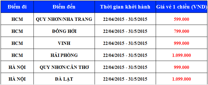 3. Xuất vé: Từ 20/04/2015 đến 14/05/2015.