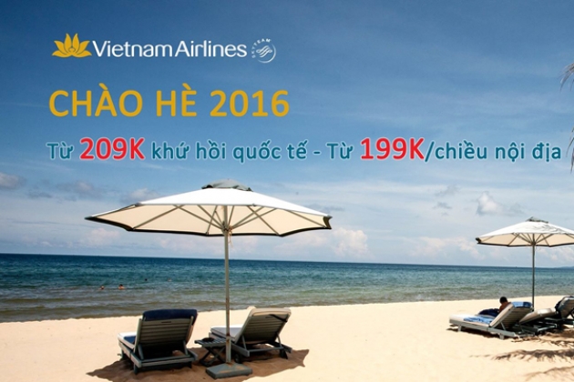 “chào hè 2016” của Vietnam Airlines, chương trình cực hot với ưu đãi lớn nhất trong năm áp dụng cho cả chặng bay nội địa và quốc tế. Theo đó, mức giá vé khuyến mãi dành cho chặng bay nội địa 1 chiều dao động từ 199.000vnd – 799.000vnd và hành trình quốc tế từ 9usd – 399usd.