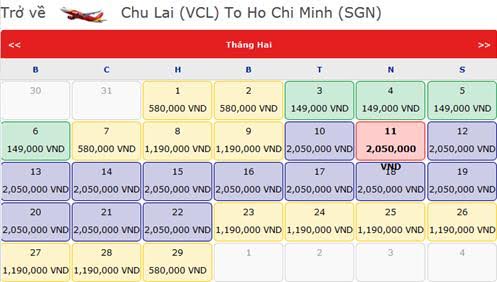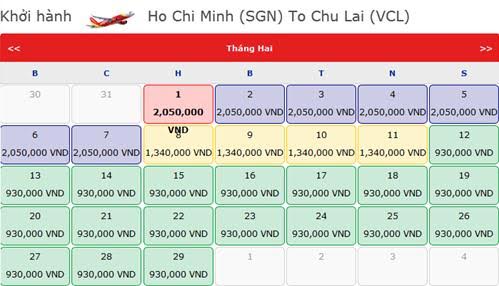 - Thời gian bay:Từ ngày 01/02/2016 – 07/02/2016 chặng SGN – VCL