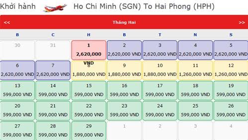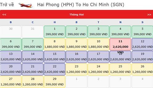 - Thời gian bay: Từ ngày 01/02/2016 – 07/02/2016 chặng SGN – HPH