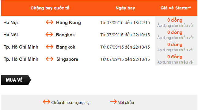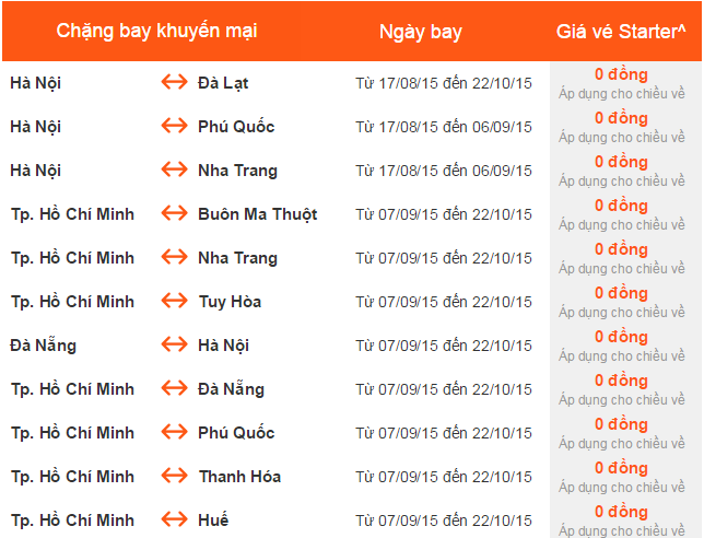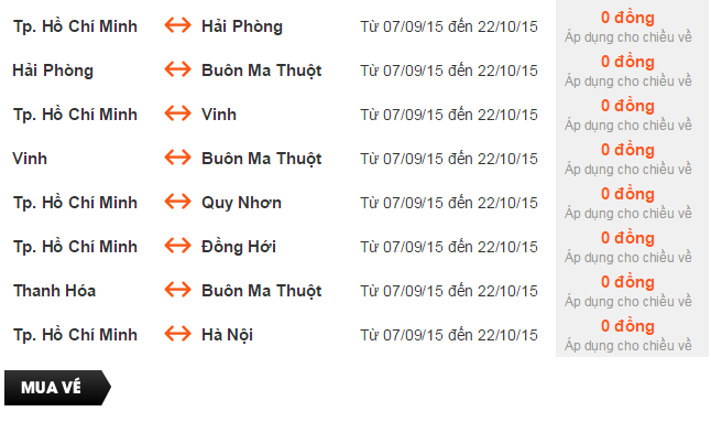 Lưu ý: Để mua được vé khuyến mại 0 đồng cho chiều về, Quý khách phải lựa chọn hành trình bay khứ hồi trong giai đoạn có khuyến mại. Khi đó giá mở bán cho chiều đi là giá bình thường trên hệ thống, giá mở bán cho chiều về được khuyến mại chỉ 0 đồng |