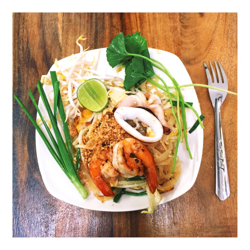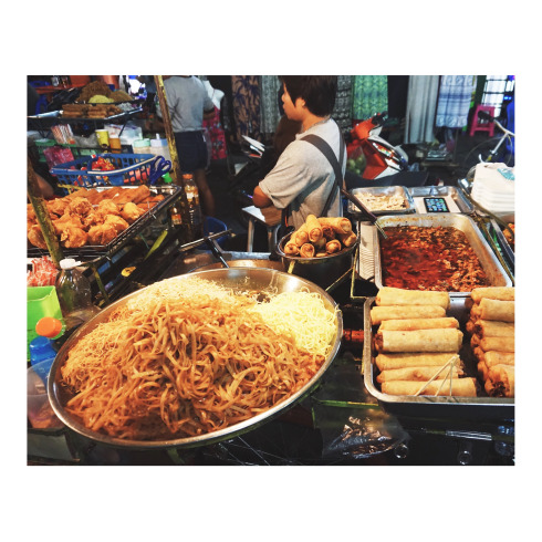 . Sukhumvit soi 38: Cách đi thì vẫn giống buổi sáng ah. Xuống ở ga Thong Lor, soi 38 ở ngay dưới chân cầu thang thôi ah. Vì hôm nay mưa nên khá ít quán mở (hoặc do vẫn còn sớm). Mình chọn 1 quán đông nhất để ăn thử pad thái và canh tomyum. Trời ơi cái bát canh to đùng cho 4 người ăn, đĩa pad cũng to không kém phần… Siêu ngon ạ mà mình chỉ ăn chưa được 1 nửa vì quá no. Mình thanh toán rời khỏi quán trong tiếc nuối bởi nghĩ nếu có nhiều người ăn thì thật tốt. Sau đó mình đi ăn xôi xoài nổi tiếng của 2 chị em ở đầu đường, ăn chè thái, ăn thịt xiên… Cô bé rời khỏi đó lúc 9h với cái bụng không thể chứa thêm -.-