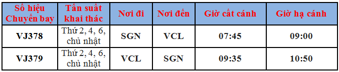 Vietjet Air khai thác hành trình Hồ Chí Minh - Chu Lai