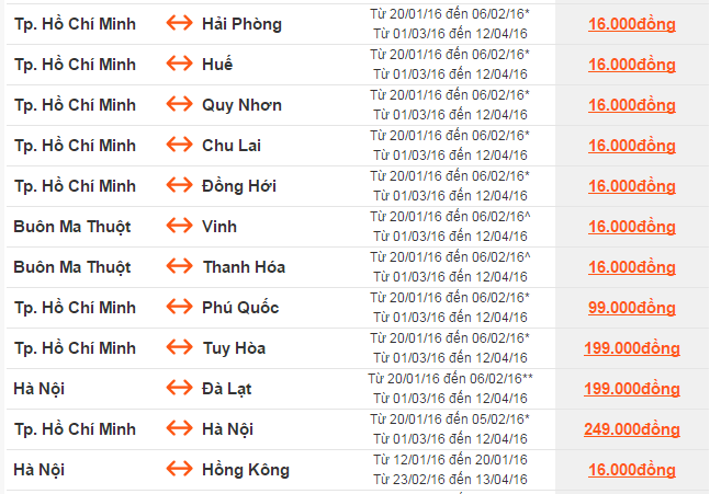 Chào năm mới 2016, 20.000 vé giá chỉ từ 16.000đ!