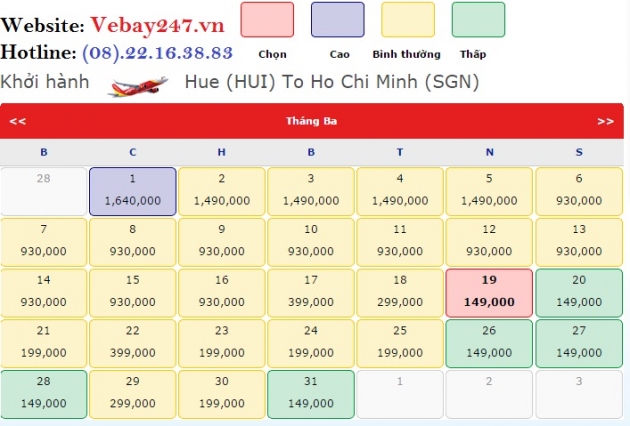 Hành trình: Huế đi Hồ Chí Minh trong tháng 03/2015