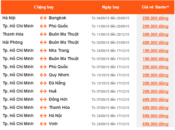 Ngay hôm nay (24/07) bạn có thể đặt cho mình những tấm vé máy bay đi Hong Kong, Hà Nội, Nha Trang hay Tp Hồ Chí Minh hoặc bất kỳ nơi đâu mà bạn muốn với mức giá khởi điểm chỉ 199.000 ĐỒNG.
