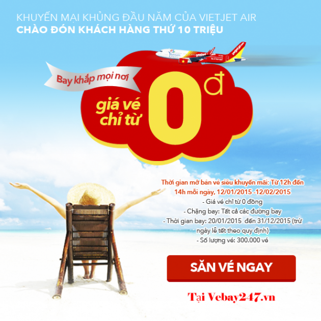Tổng hợp những mẹo săn vé giá rẻ thành công được Vebay247 chia sẻ cho khách hàng.Bí quyết này giúp bạn săn thành công vé rẻ Vietjet Air trong chương trình khuyến mãi khủng đầu năm với 300.000 vé 0đ .
