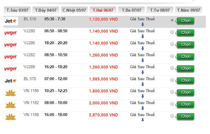 Bảng giá vé máy bay Hồ Chí Minh đi Hải Phòng trong tháng 7