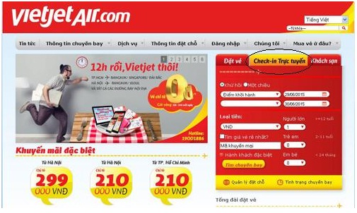 Bước 1: Bạn truy cập vào website: www.vietjetair.com