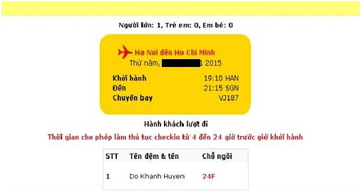 Bước 5:  Bạn kiểm tra lại các thông tin cần thiết. Nếu ưng ý, bạn có thể nhận nút In để in thẻ lên máy bay, Gửi email để nhận được toàn bộ thông tin hoặc Kết thúc để về trang đặt chỗ ban đầu.