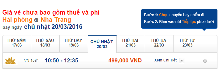 Truy cập website: http://vebay247.vn/ lựa chọn hành trình và khung thời gian bay ưng ý và tiến hành các thao tác đặt vé máy bay như thông thường.