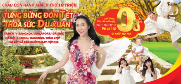 Wow… Chào đón hành khách thứ 10 triệu, Vietjet bán vé 0 đồng nguyên một tháng, hàng trăm nghìn cơ hội bay khắp Việt Nam và đến Singapore, Thái Lan, Hàn Quốc, Đài Loan, Campuchia với giá 0 đồng siêu khuyến mãi chờ đón bạn vào giờ vàng 12h -14h mỗi ngày từ 12/1đến 12/2/2015. Mua vé tại website: http://vebay247.vn