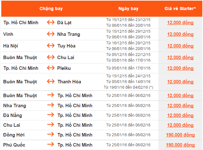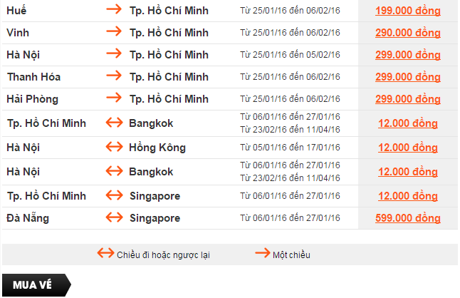 Giá vé một chiều, chưa bao gồm thuế, phí. Giá vé phụ thuộc tình trạng chỗ của chuyến bay và chỉ mở bán cho một số chuyến bay và ngày bay. Vé không được hoàn, hạn chế thay đổi, nếu thay đổi phải đóng phí. Không bao gồm Hành lý ký gửi. Các tiêu chuẩn về trọng lượng và kích thước của Hành lý xách tay sẽ được áp dụng. Hành khách mang Hành lý xách tay không đúng với quy định sẽ phải làm thủ tục ký gửi và phải đóng phí.