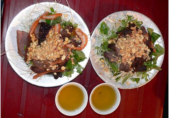 Bạn không nên bỏ qua phố ẩm thực Cấm Chỉ. Tô cháo và với tiêu, ớt bột cùng hành hoa sẽ làm ấm lòng người giữa đêm khuya. Cơm rang thập cẩm ở phố này, phố Mã Mây và phố Hàng Dầu cũng rất ngon. Trong số các món ăn đêm của Hà Nội, hầu như ai cũng muốn thử món nộm bò khô ở phố Hồ Hoàn Kiếm. Một chút đu đủ, cà rốt nạo, thịt bò khô cắt mỏng như sợi tăm chan dấm, rắc thêm ít kinh giới và lạc rang giã nhỏ thì ngon tuyệt mà giá cả lại rất bình dân.