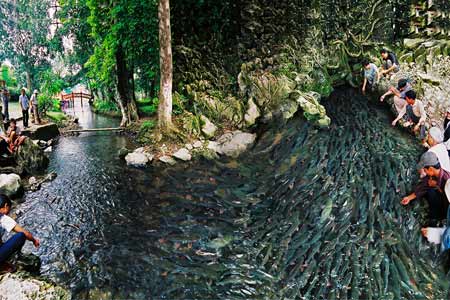 Suối cá tại chân núi Trường Sinh thuộc bản Ngọc, xã Cẩm Lương, huyện Cẩm Thủy (cách trung tâm TP Thanh Hóa hơn 70 km về phía Tây Bắc) là một điểm du lịch nổi tiếng thu hút khách du lịch và các nhà nghiên cứu.