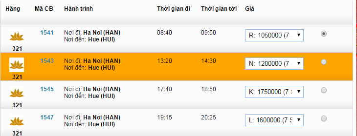 Hiện nay hành trình Hà Nội đi Huế chỉ có hãng hàng không VietNam Airlines khai thác tần suất 04 chuyến/1 ngày. Với giờ bay khác nhau chuyến bay sớm nhất lúc 08:55 và đến Huế lúc 10:05. Chuyến bay muộn nhất lúc 19:05 và đến Huế lúc 20:15.