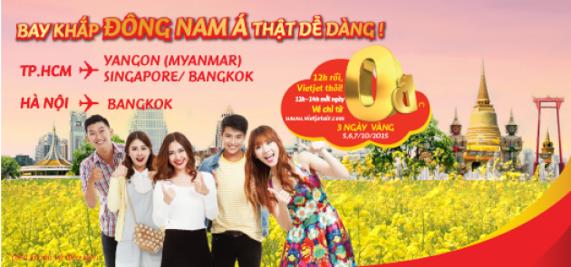 BAY KHẮP ĐÔNG NAM Á THẬT DỄ DÀNG! ,Vietjet Air khuyến mãi vé 0đ đi các nước Đông Nam Á.